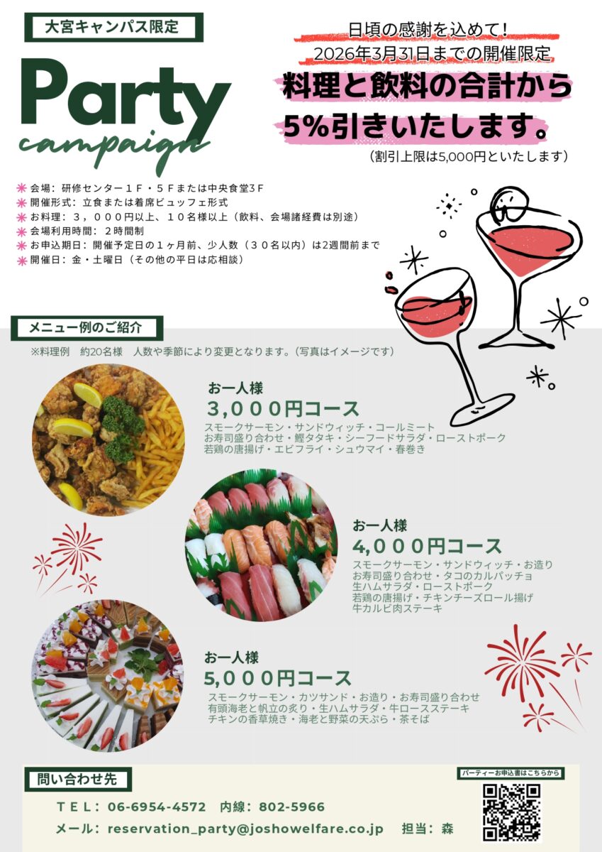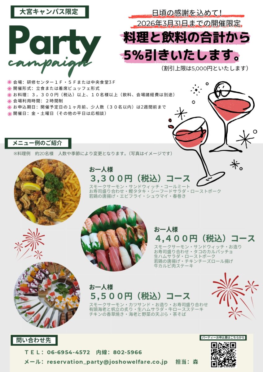 工大大宮キャンパス中央食堂、研修センターでパーティーはいかがですか。