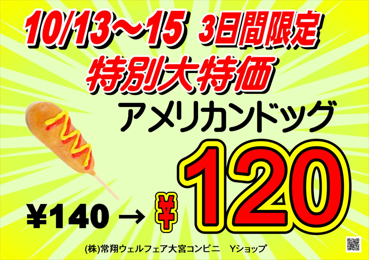 【大工大】大宮コンビニ アメリカンドックセール開催!!