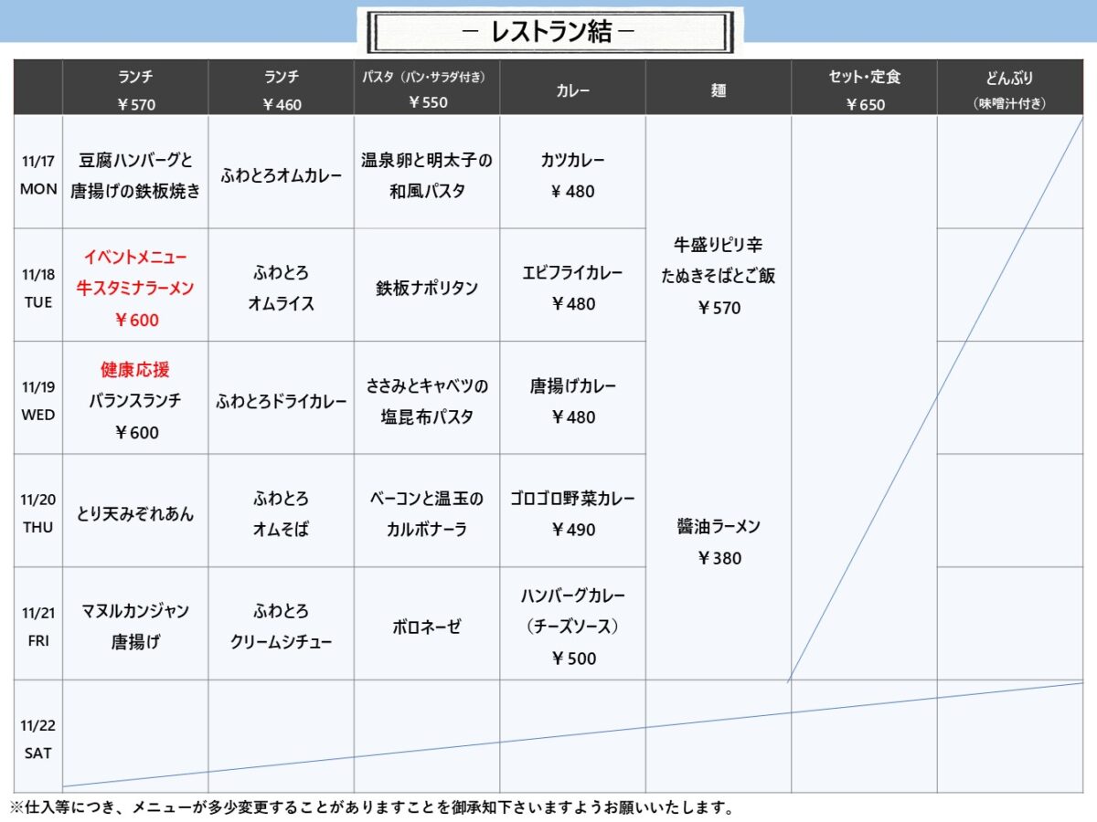 【摂南大】枚方:レストラン結 11月17日からの1週間メニュー