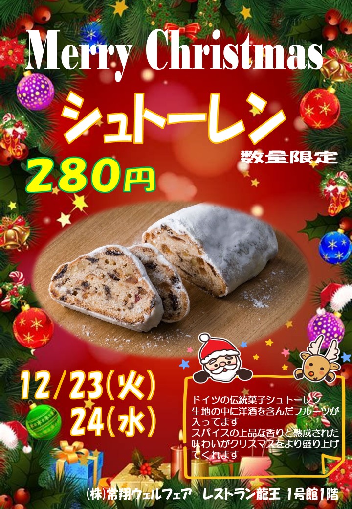 【広国大】東広島:12月レストラン龍王イベント シュトーレン♪