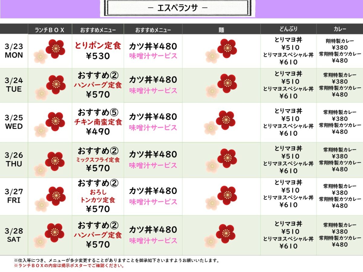【常翔学園中・高】エスペランサ 3月23日からの1週間メニュー